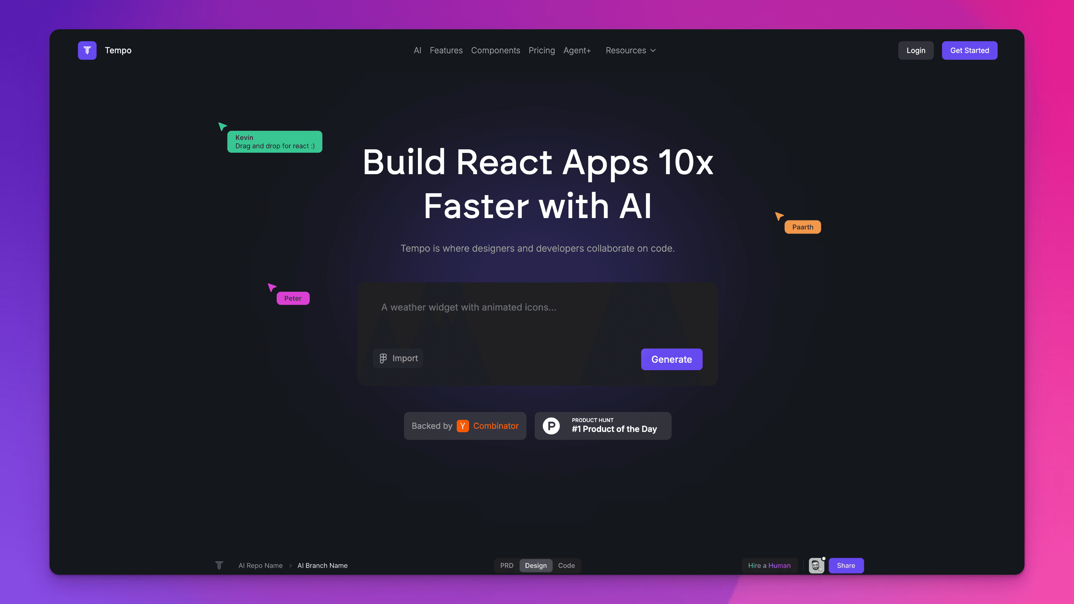 Tempo is a visual IDE that feels like a no-code tool but outputs clean React code, letting you design and build interfaces with AI and pixel-perfect control. It’s perfect for vibe coders and no-coders who want the speed of drag-and-drop with the power to ship real production code. Think Figma meets VS Code, with AI on your team.