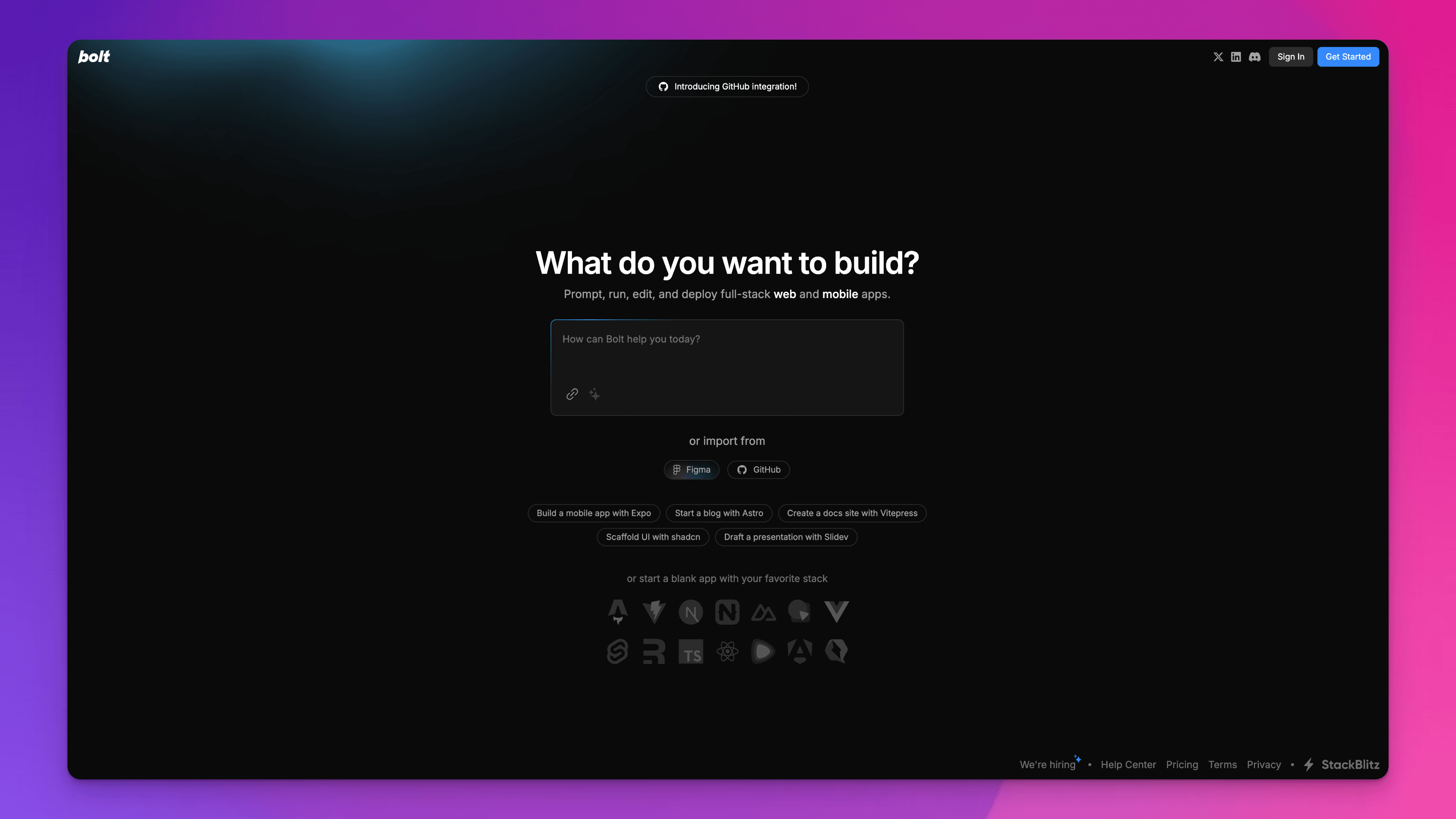 Bolt.new is an AI-powered, browser-based dev environment where you type what you want to build and it scaffolds full-stack web or mobile apps; complete with code editing, runtime, and one-click deployment via Netlify. It blends natural language prompting with StackBlitz’s WebContainers and integrates tools like Figma, Supabase, Stripe, GitHub, and Expo. Perfect for turning your vibe-code ideas into running apps in minutes.